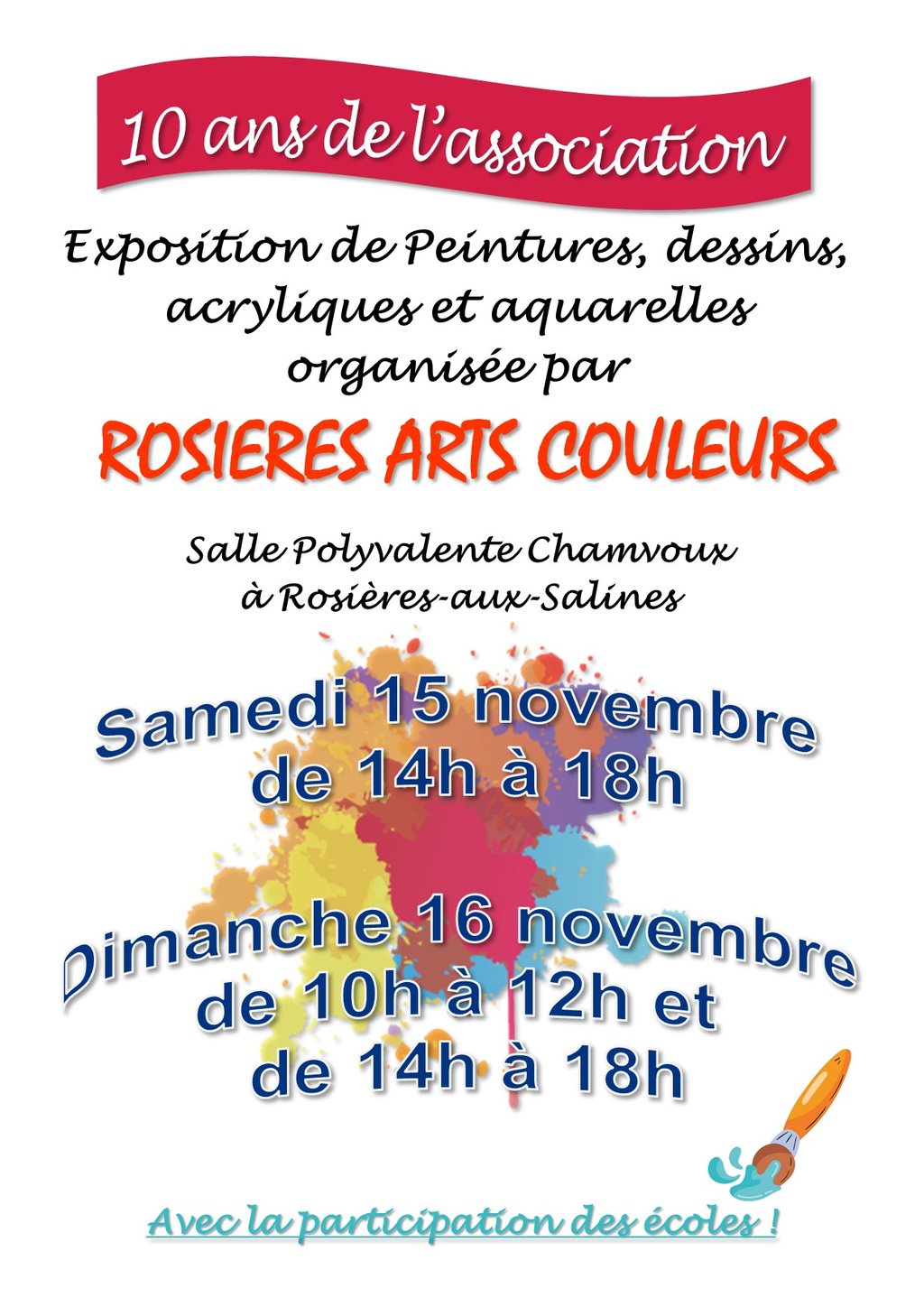 L'association Rosières Arts Couleurs vous invite le week-end du 15 et 16 novembre 2025 à découvrir leur exposition de peintures, dessins, acryliques et aquarelle !