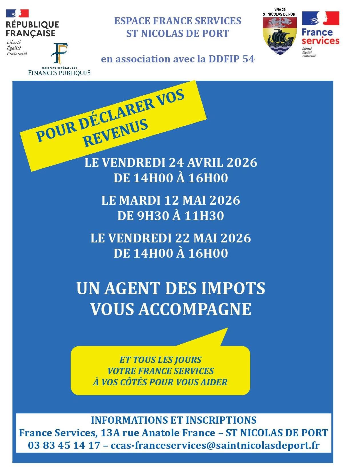 👉 Un agent des impôts sera présent à France Services – 13 A rue Anatole à SAINT-NICOLAS-DE-PORT