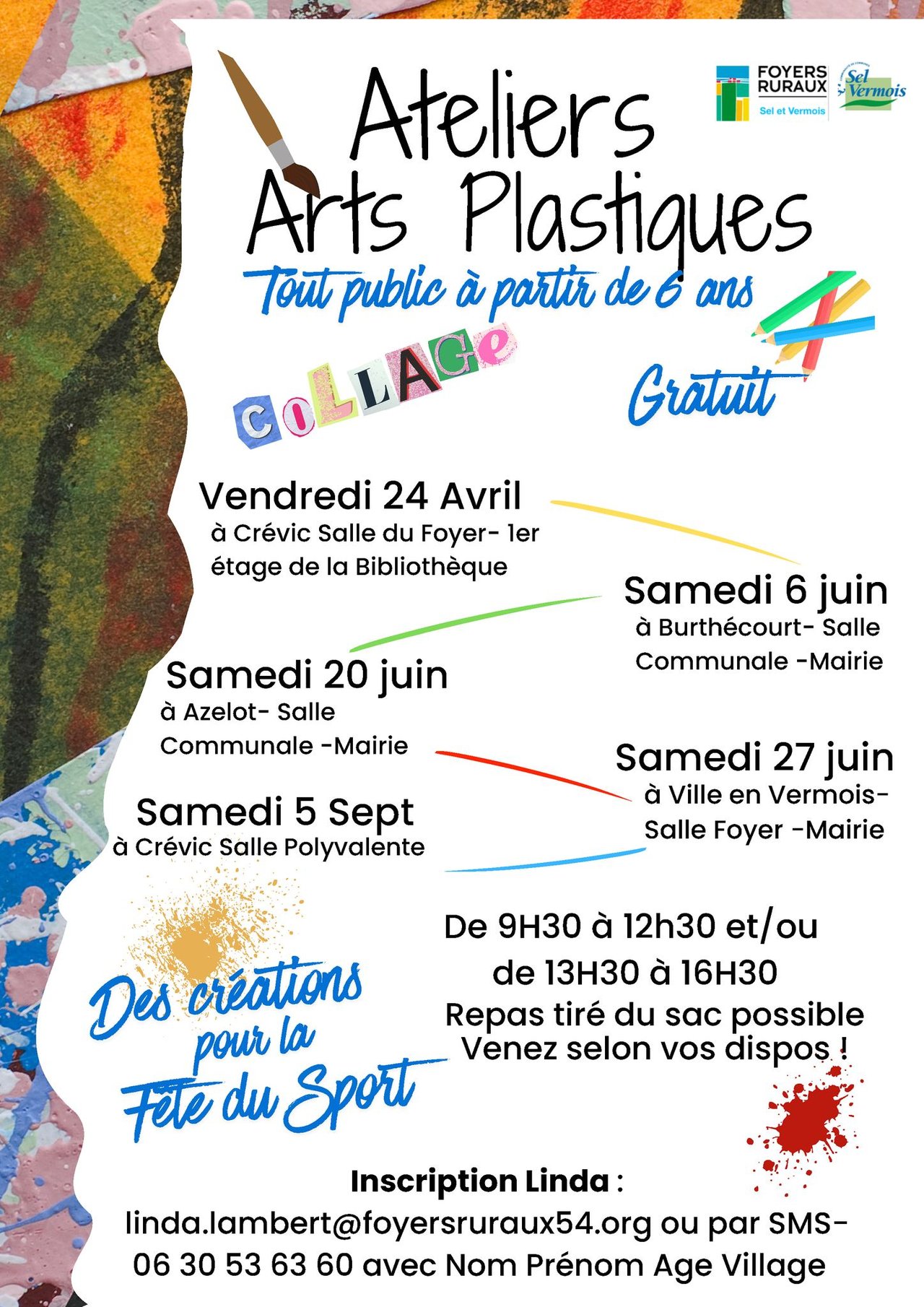 🎨 Dans le cadre de la préparation de la Fête du Sport des Foyers Ruraux (11, 12 et 13 septembre), plusieurs ateliers artistiques sont organisés par les Foyers Ruraux sur le secteur Sel et Vermois.
